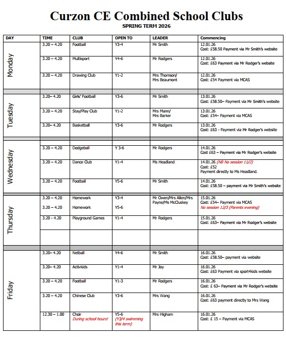 High quality clubs and activities are an essential part of school life. They provide opportunities to enrich children’s experiences beyond the curriculum and are a great way of developing children’s social skills by enabling them to interact with different year groups across the school.